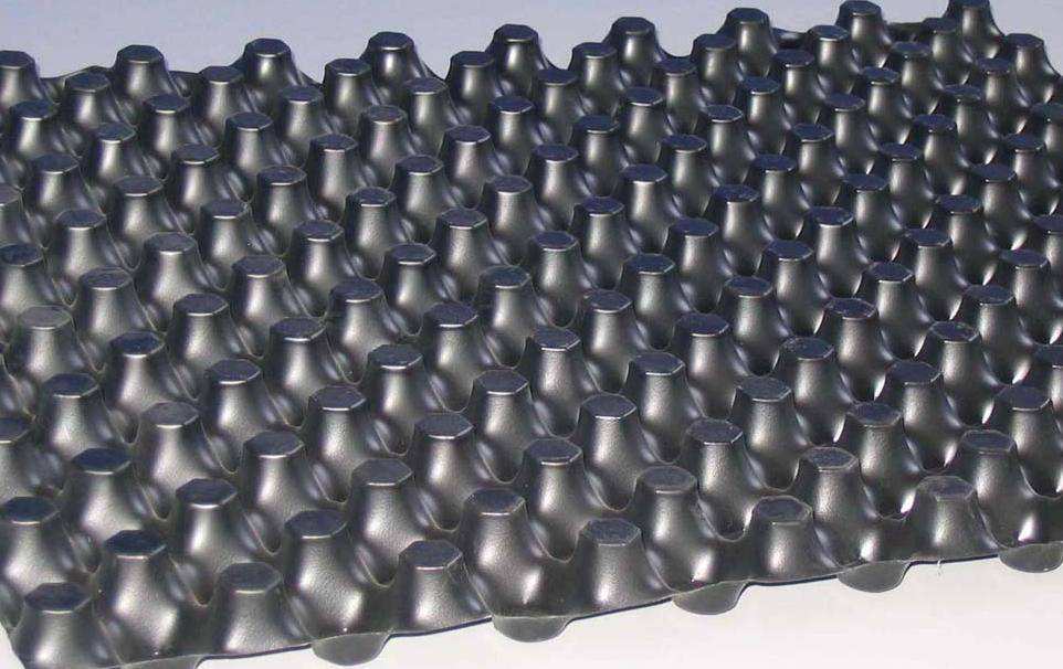 成都排水板分卷材及片材二個(gè)系列,造型上采用特殊工藝將塑料板材壓出封閉凸起的柱狀殼體,形成凹凸?fàn)钅?,殼連續(xù),具有立體空間和一定支撐高度,邊沿加工生產(chǎn)時(shí)熱粘上丁基橡膠條,殼頂部覆蓋土工布過濾層,用于滲水、疏水、排水和蓄水的產(chǎn)品。又稱為:搭接粘膠排水板、排疏板、排水保護(hù)板、濾水板、塑料凹凸排水板、塑料夾層板。產(chǎn)品規(guī)格分為廣場(chǎng)綠化用和地下室用,有H20、H25規(guī)格供選用。良好的排水系統(tǒng)對(duì)土建的施工周期及構(gòu)筑物的正常使用和壽命具有重要的作用。排水板與多孔滲水管組成一個(gè)有效的疏排水系統(tǒng),圓柱形的多空排水板與...